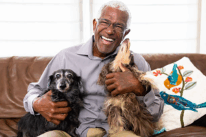 old man with two dogs